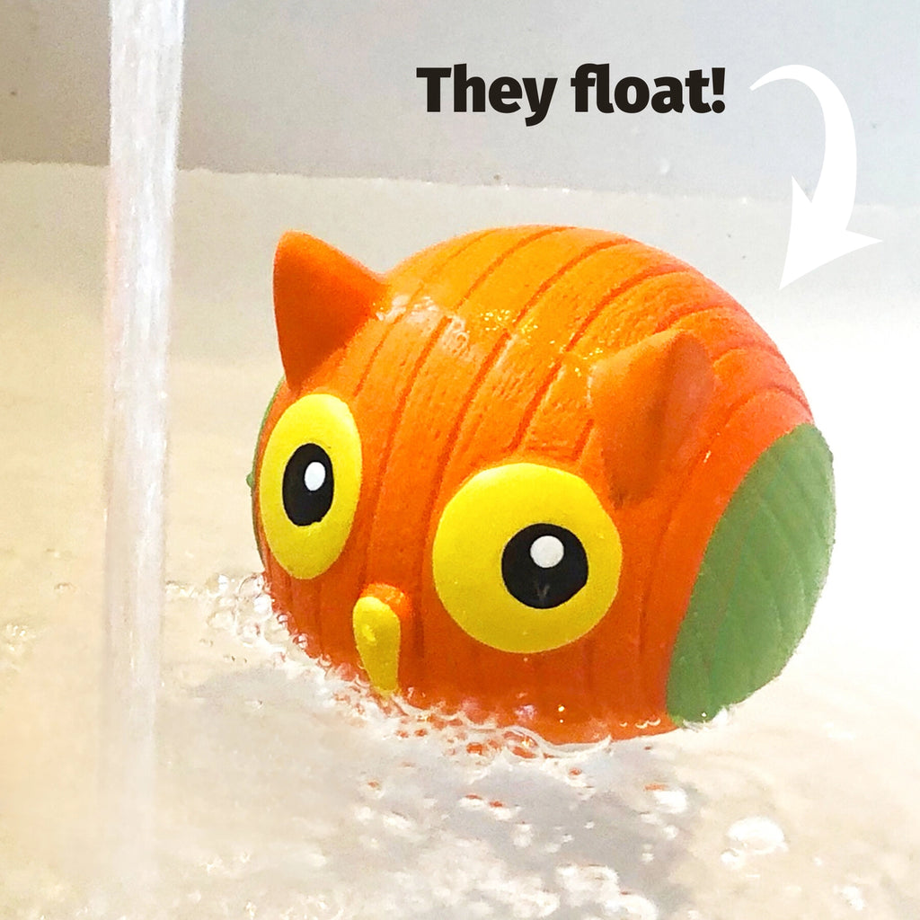 All natural rubber stuffed balls. Handpainted with child safe paint. Bounceable, playable,floatable fun !!